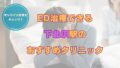 こちらのサイトでは、ED治療ができるクリニックをエリアごとに紹介しています。最近ではオンライン診療によりED治療薬を処方してくれるクリニックもあるので、安心して薬を購入できます。あなたのお悩みに応えてくれるクリニック探しの参考にしていただければ幸いです。